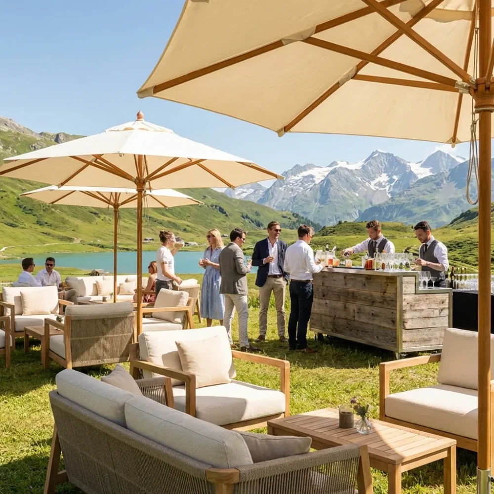 Ein weiterer Vorteil ist die Optik. Moderne Sonnenschirme wirken hochwertig und passen zu Bars, Lounges und Stehtischen. In Kombination mit einer mobilen Bar entsteht schnell ein stimmiges Gesamtkonzept. Passend dazu lohnt sich ein Blick auf den Artikel Bar mieten in der Schweiz: Eventorganisation 2025. Außerdem ist es sinnvoll, auch an die Fotoausstattung zu denken. Inspiration bietet der Beitrag Hochzeitsfotograf mieten: Tipps für Events in der Schweiz. Zusätzlich finden Sie hilfreiche Informationen zur UV-Sicherheit auf Bundesamt für Gesundheit.